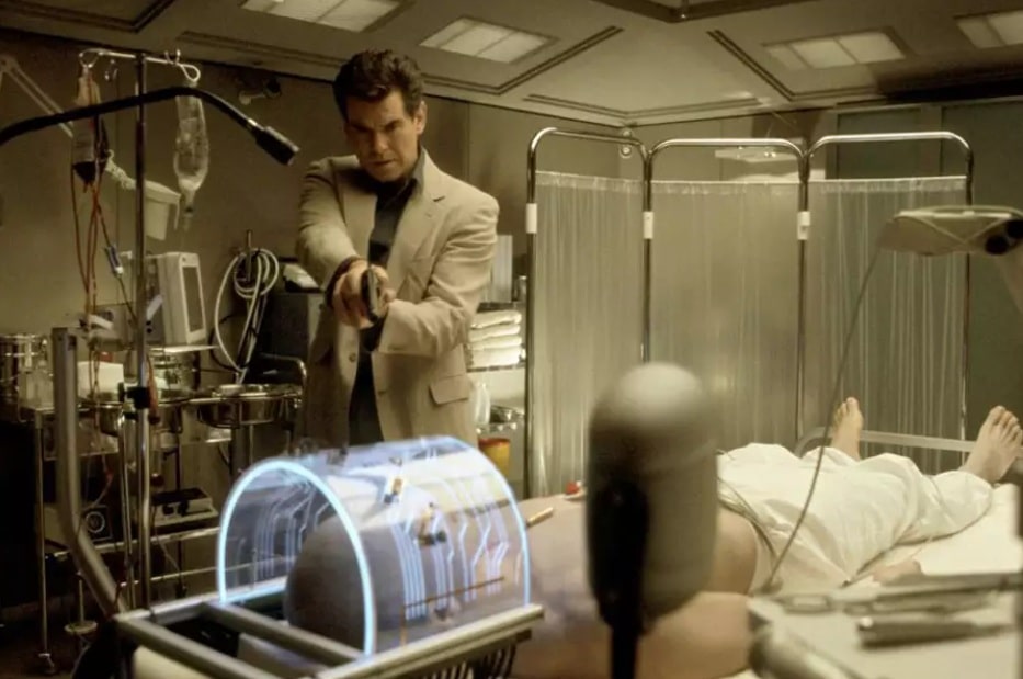 Kolejne dwa filmy przyniosły supertechnologie, niedostępne nam po dziś dzień, czyli prawie 30 lat od premiery filmów, ale także te, które obecnemu widzowi nie wydają się niczym niezwykłym. Mam tu na myśli przede wszystkim BMW z filmu Jutro nie umiera nigdy z 1997 roku. Było ono zdalnie sterowane przy użyciu telefonu, gdzie dotykowe ekrany mogły zamieniać się w emulowane analogi padów, jakie znamy z gier mobilnych. Nic nadzwyczajnego, prawda? w tej chwili tak, jesteśmy w stanie bezproblemowo sobie to wyobrazić i gdyby nie trudności natury prawnej na pewno jakieś auto już miałoby taką opcję. Ale w 1997 roku kiedy kręcono ten film, Playstation (i to „jedynka”!) miało raptem dwa lata, a ówczesne telefony… cóż, choćby w Snake’a byście na nich nie pograli, bo takowy pojawił się dopiero rok później, w 1998 roku na Nokii 6110. Niesamowite, wizjonerskie wyprzedzenie technologii o dwie dekady. Niektórzy mówią, iż to właśnie jest cecha dobrego science-fiction.
