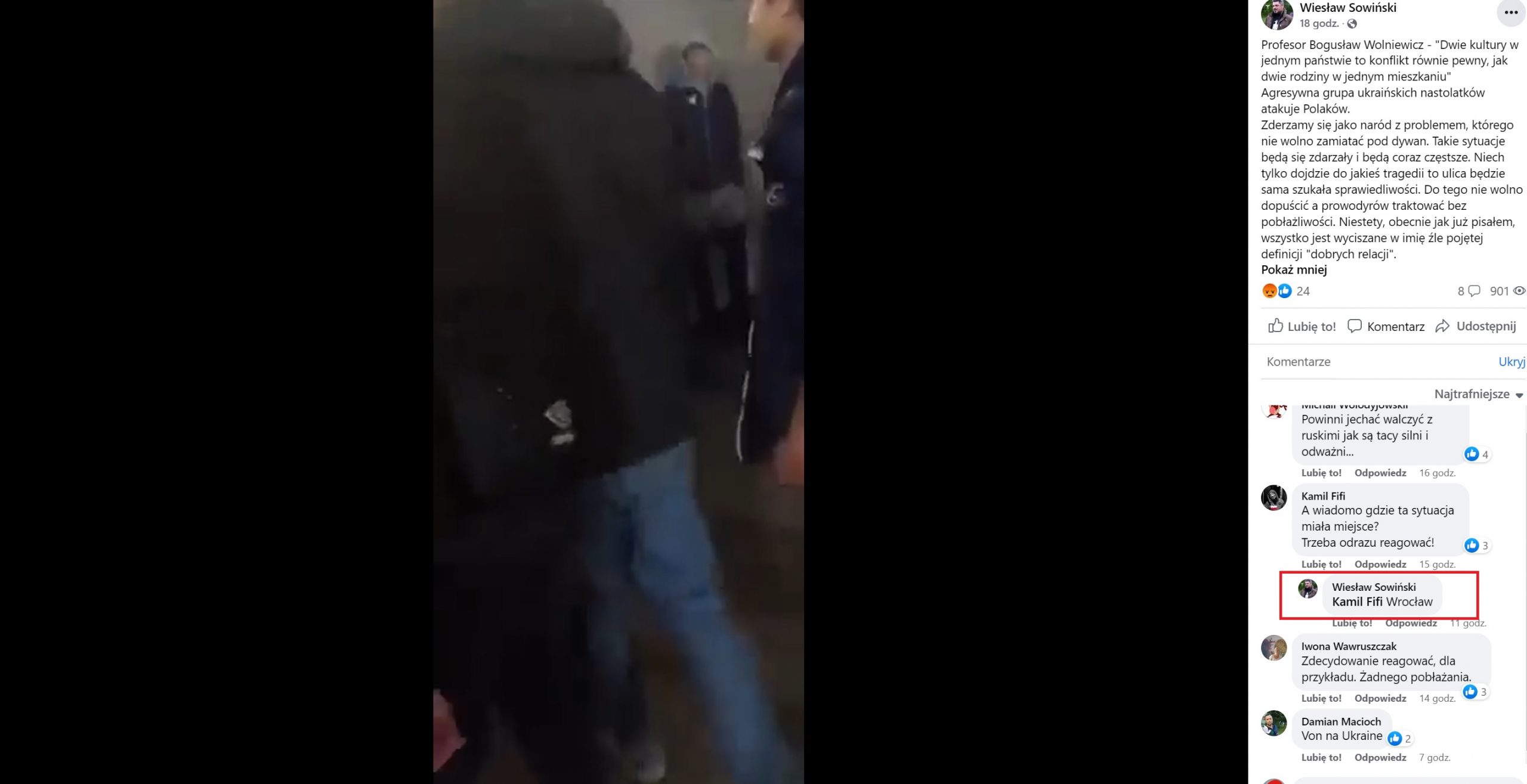 Сейчас в СМИ появилась новая запись, на которой можно увидеть группу украинских молодых людей, издевающихся, с головой ниже головой поляка. По информации, предоставленной советником от Нижней инъекции, ситуация произошла во Вроцлаве. Один из украинцев на фланге нескольких сверстников дважды ударил молодого поляка в лицо. Сначала с открытой рукой, потом с кулаком.