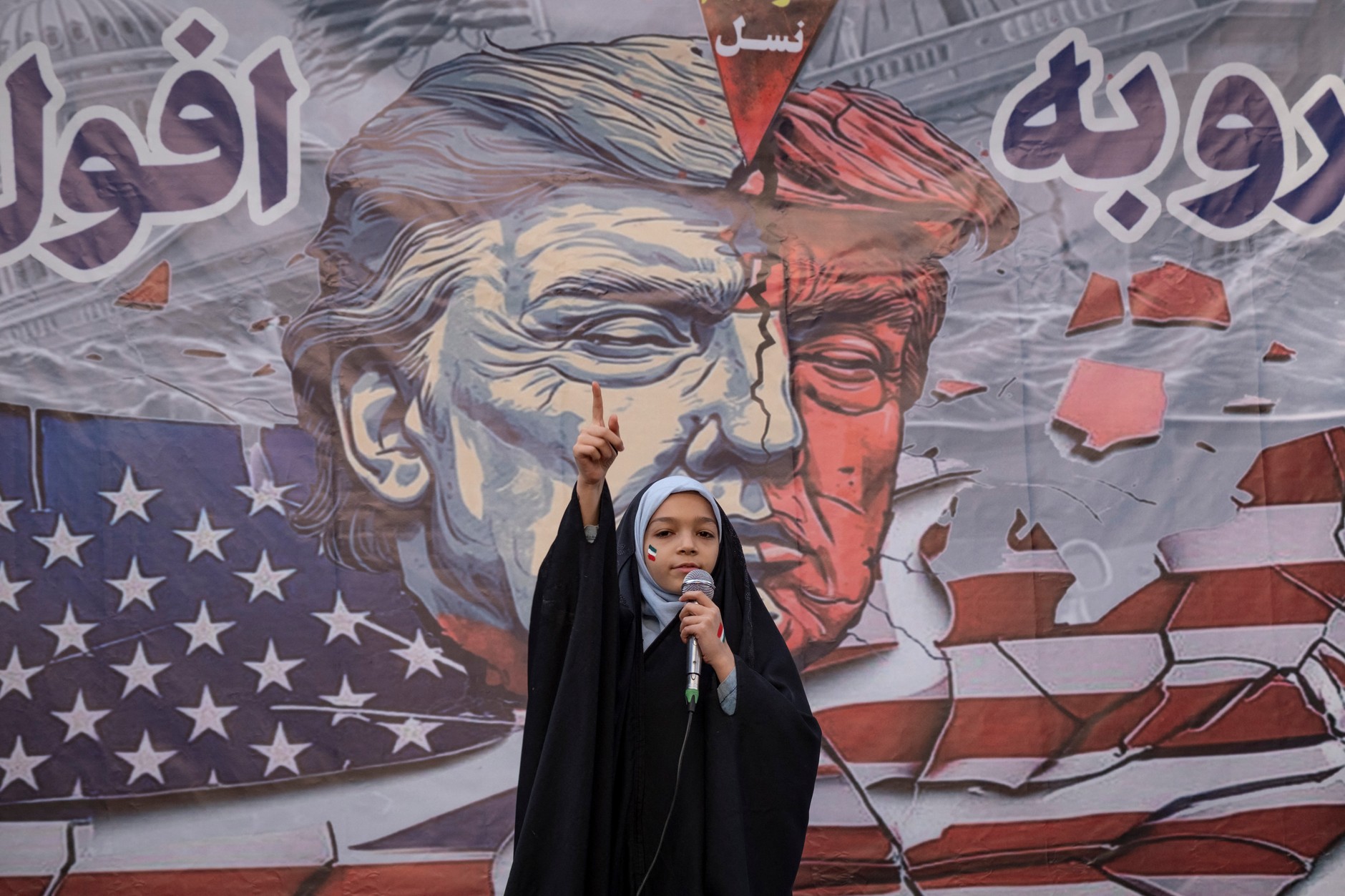 Irańska uczennica w trakcie antyamerykańskiej i antyizraelskiej demonstracji. Teheran, 4 listopada, 2025 r.Morteza Nikoubazl/NurPhoto / AFP