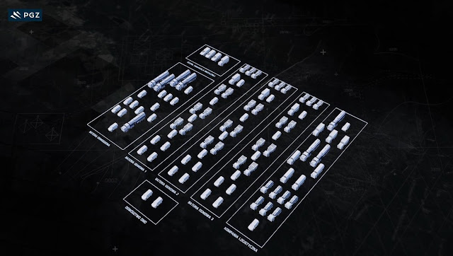 - ремонтный взвод - автомобиль технической безопасности + артиллерийский оружейный ремонт грузовик + оружейный ремонт мастерская и мастерская электроники (все в Jelcza 662)